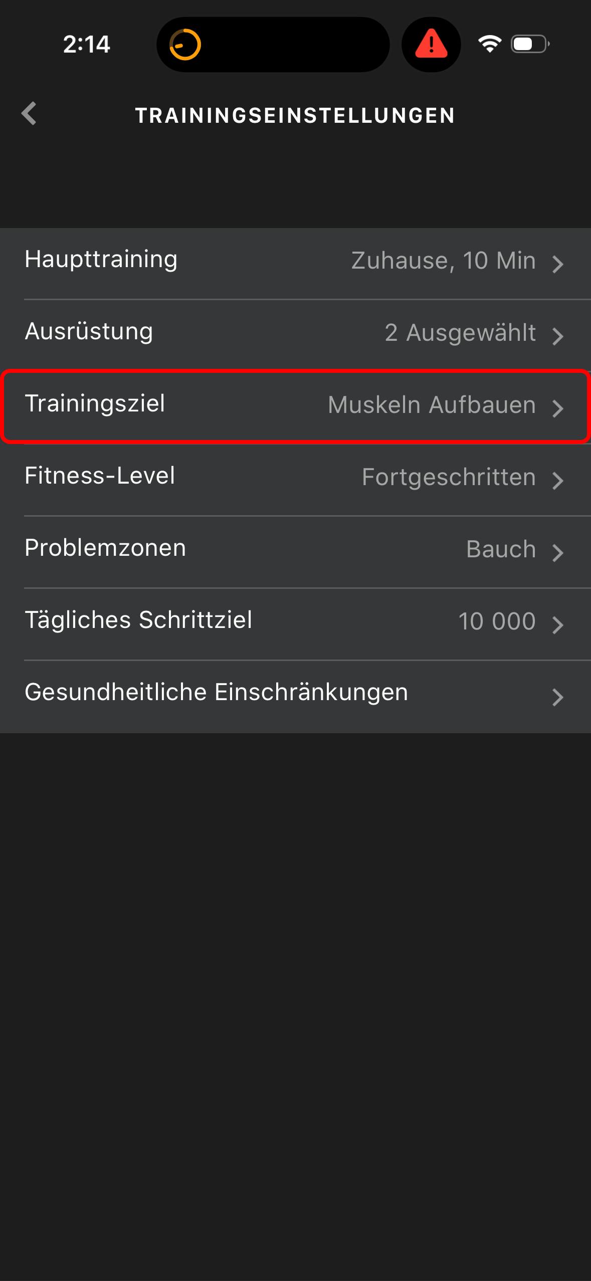 Um dein Trainingsziel zu ändern, öffne die Muscle Booster App auf deinem Gerät und gehe folgendermaßen vor: