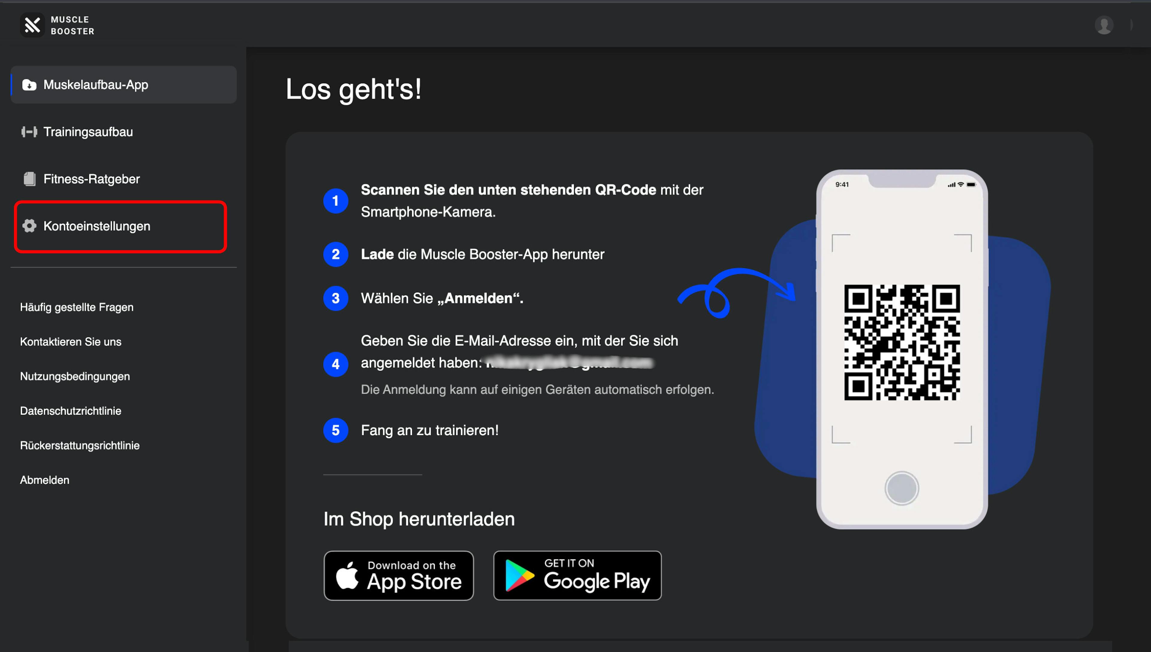 Unmittelbar nach dem Kauf senden wir eine Quittung mit dem Preis Ihres Plans und dem Verlängerungsdatum an Ihre Account-E-Mail-Adresse. Diese E-Mail wird von support@email.muscle-booster.io gesendet. Falls sie sich nicht in Ihrem Posteingang befindet, überprüfen Sie bitte auch Ihren Spam-Ordner.