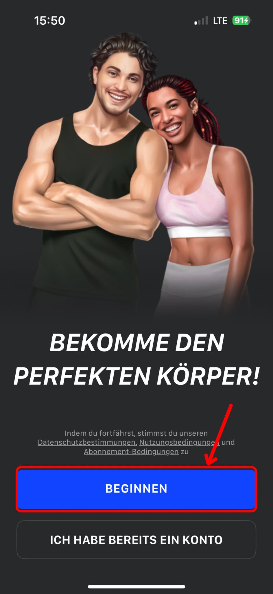 - Tippen Sie auf die Schaltfläche Beginnen, wie unten gezeigt.