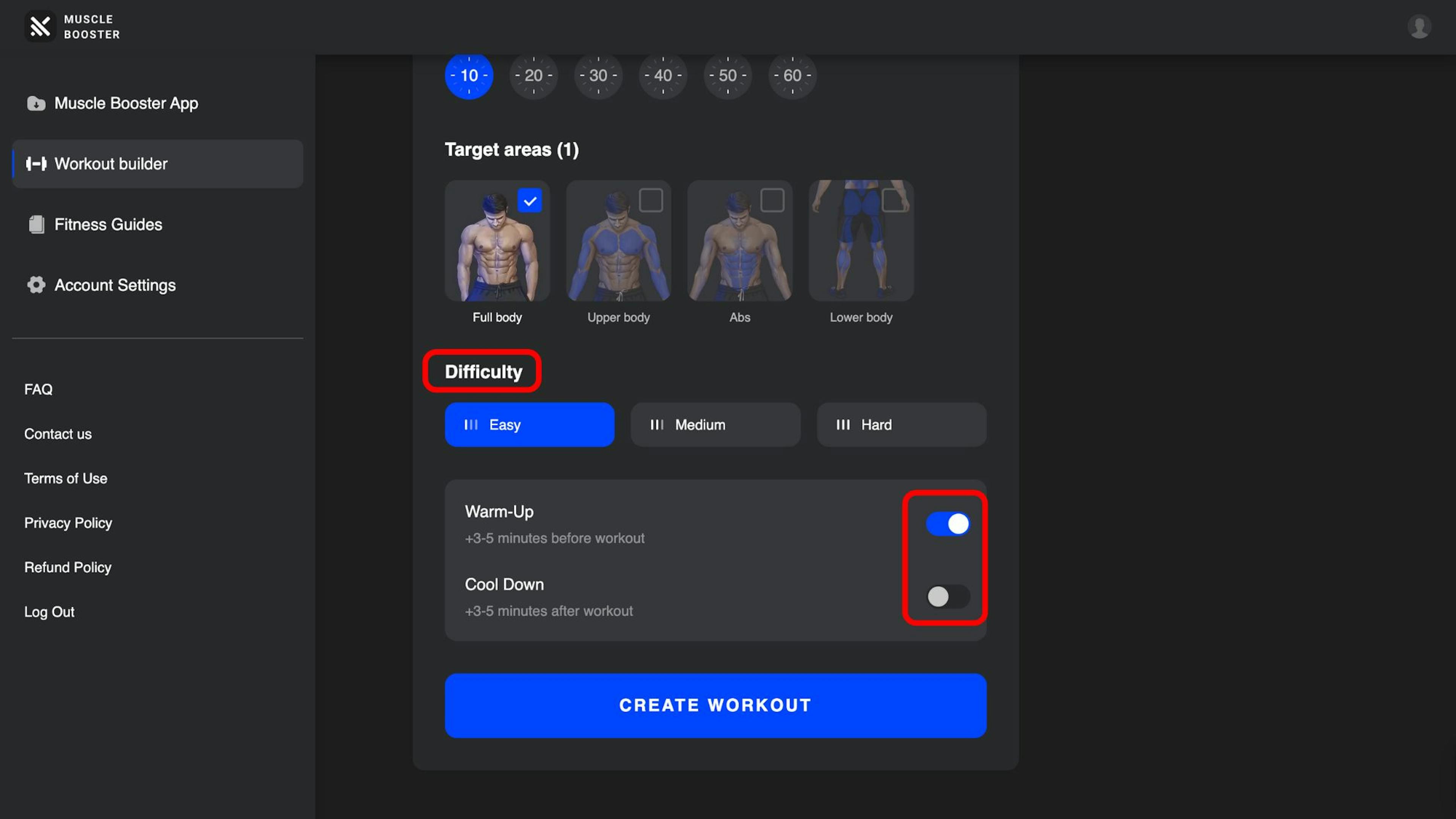 Additionally, you can choose the difficulty level and select warm-up and cool down exercises, which will help provide a nice start and finish to your physical activity.