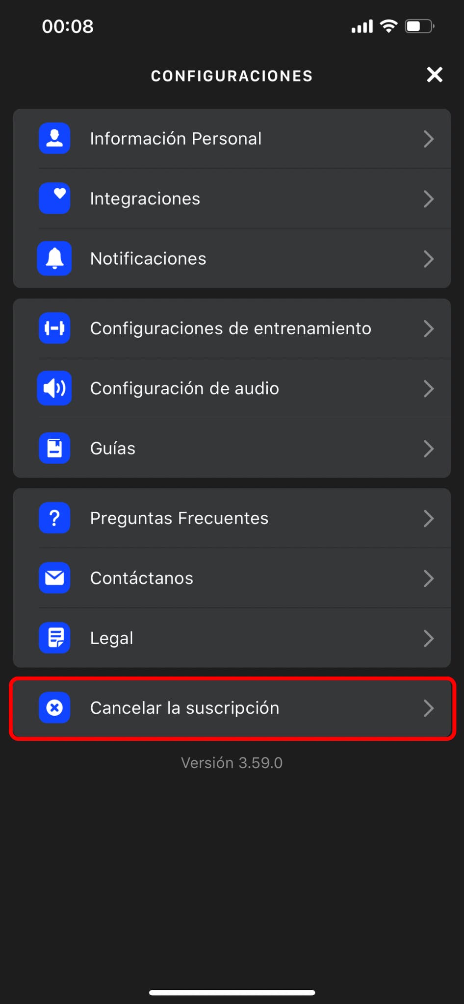 2. Ve a Cancelar Suscripciones.