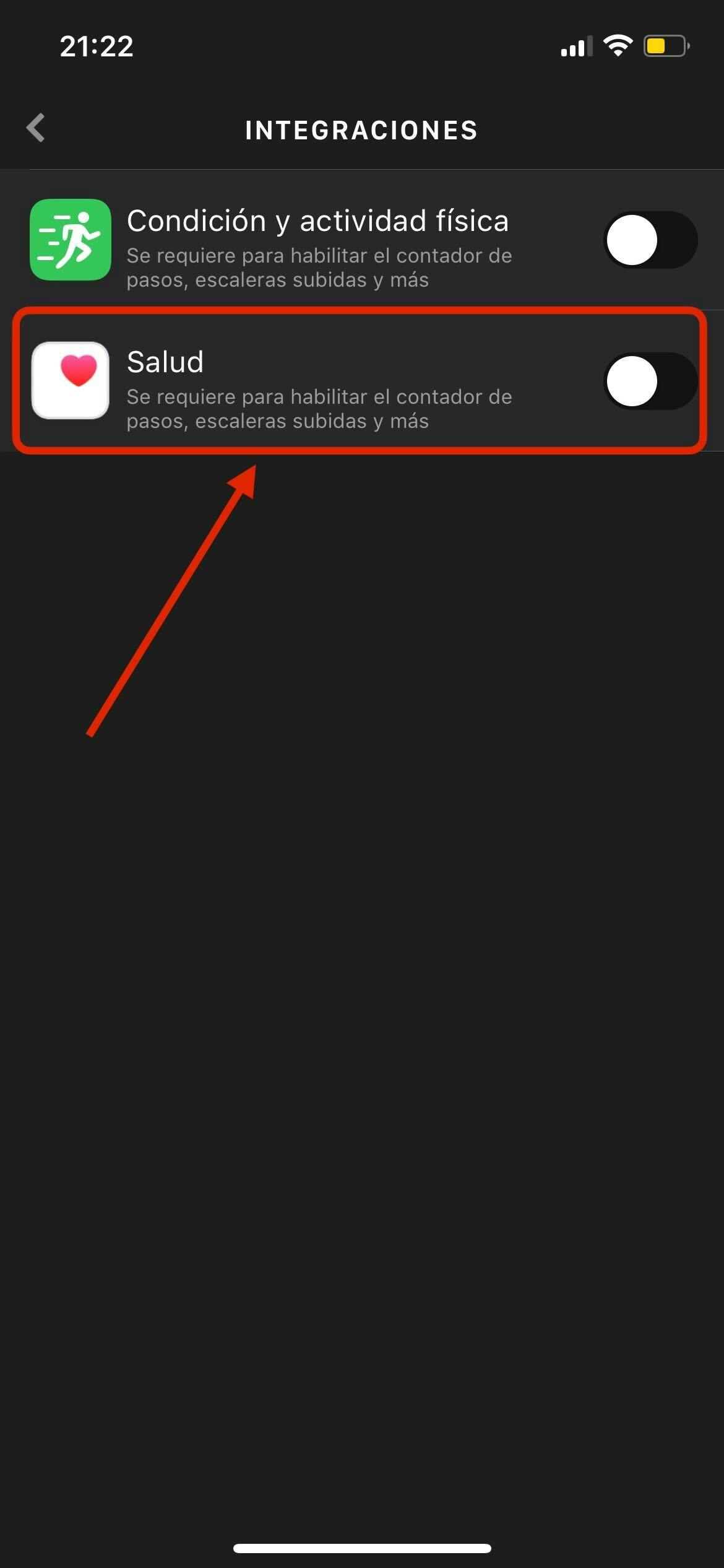 También puedes integrar la aplicación Muscle Booster con Apple Health, de modo que la app sincronice cualquier paso que se haya registrado usando tu teléfono o Apple Watch. Por favor, sigue las siguientes instrucciones para configurarlo: