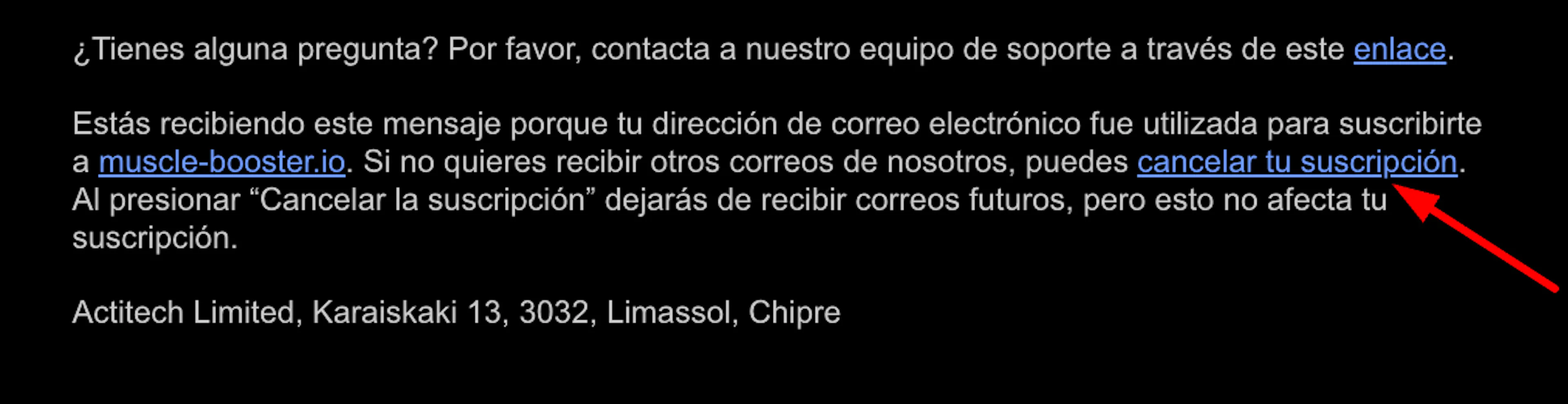 Si ya no deseas recibir correos electrónicos de nuestra parte, puedes darte de baja en la parte inferior de nuestros correos electrónicos mediante el hipervínculo Darse de baja, como se muestra a continuación.