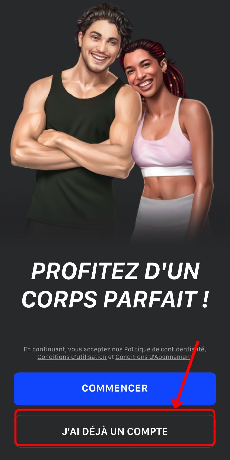 2. Ouvrez l'application et appuyez sur le bouton J’ai déjà un compte sur l'écran d'accueil, comme illustré ci-dessous.