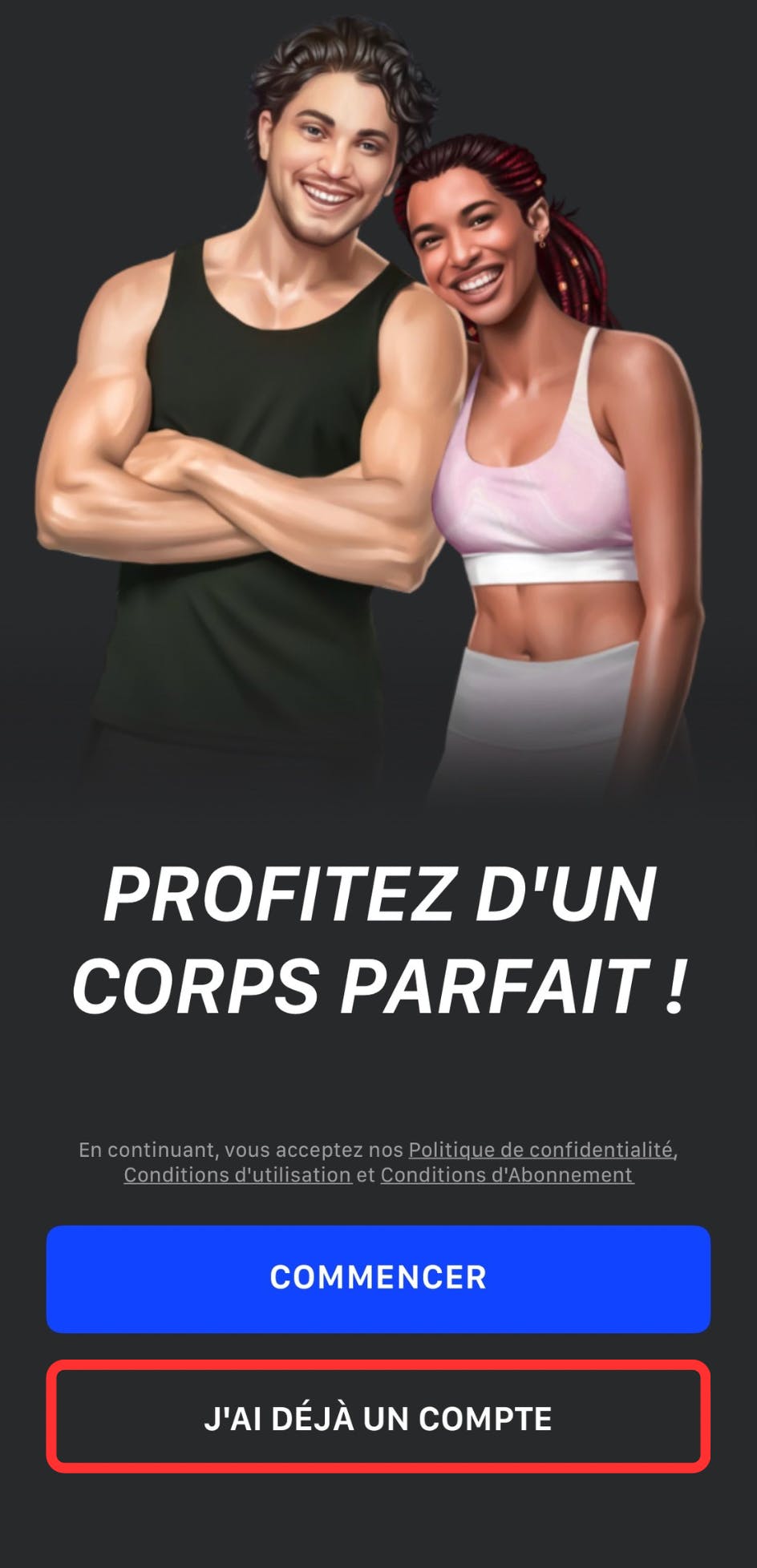 3. Ouvrez l’application et touchez le bouton J’ai déjà un compte sur l’écran d’accueil de l’application.