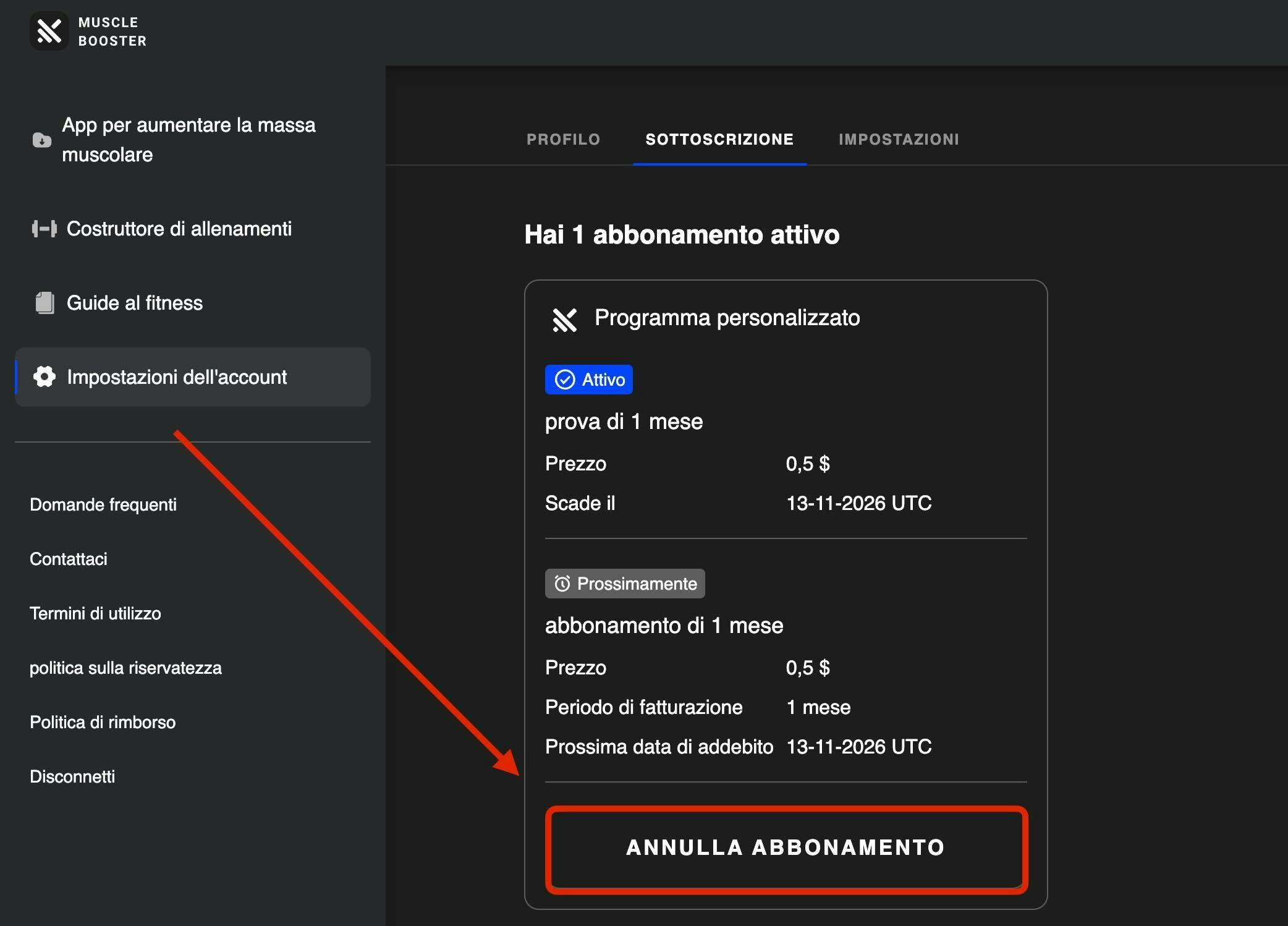 Assicurati di annullare almeno 24 ore prima della prossima data di fatturazione per evitare l'addebito del ciclo successivo.