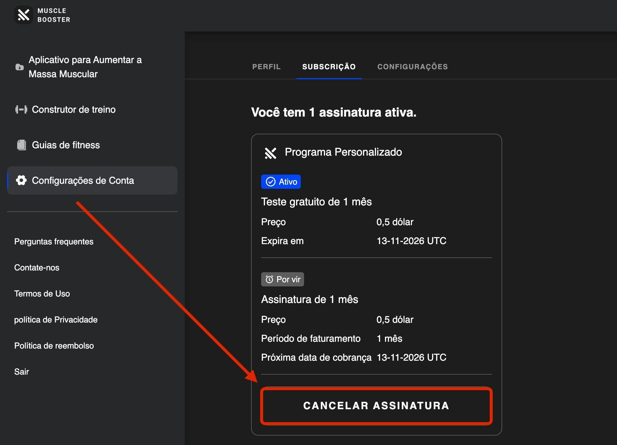 - Veja o seu plano atual e selecione Cancelar Subscrição.