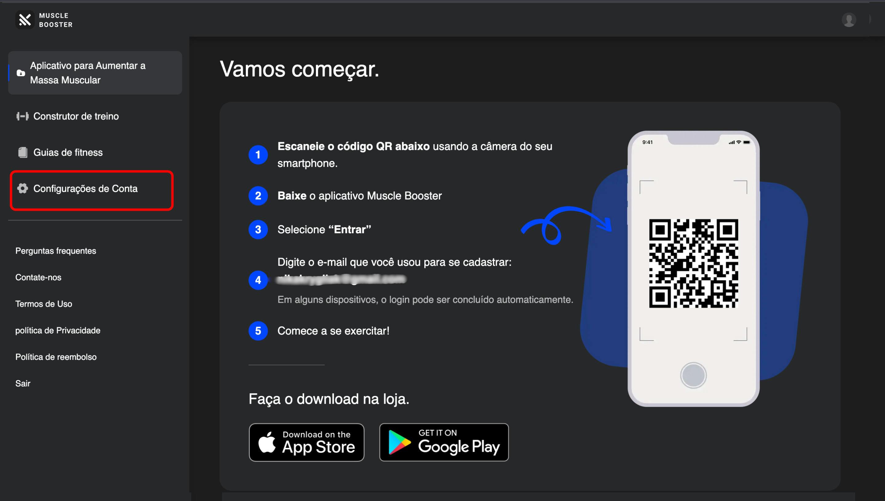 Logo após a sua compra, enviamos um recibo para o email da sua conta com o preço do plano e a data de renovação. Este email será enviado por support@email.muscle-booster.io. Se não estiver na sua caixa de entrada, por favor verifique a pasta de spam.