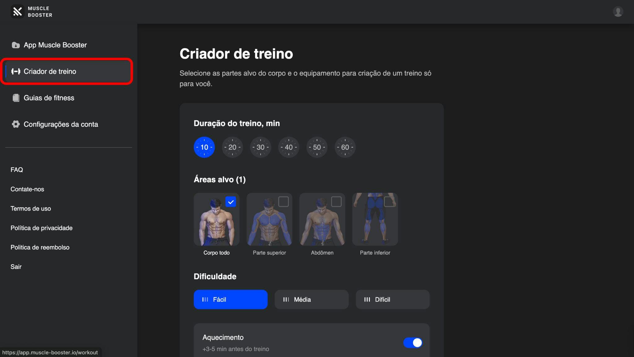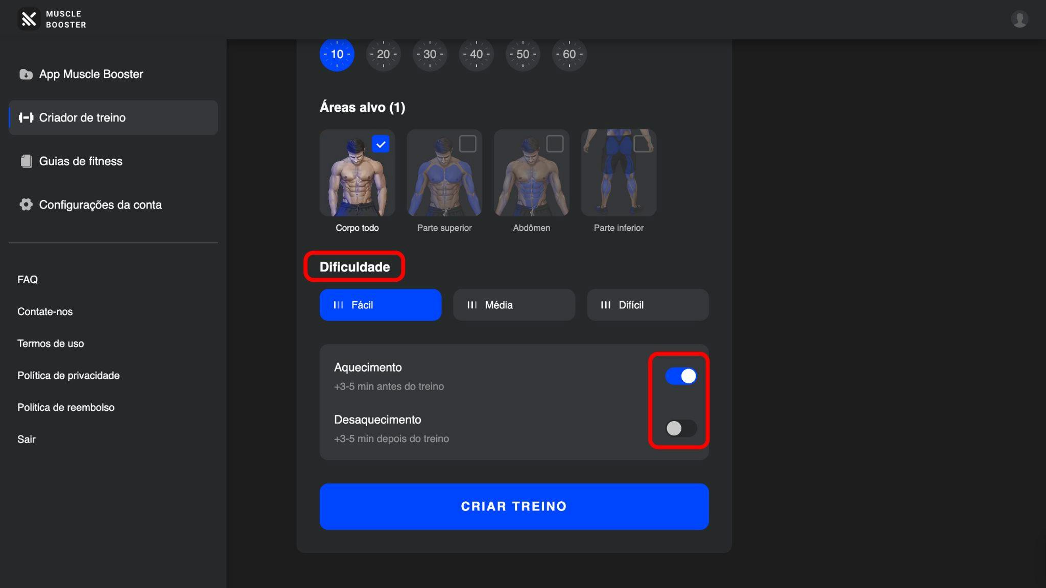 Por fim, clique no botão Criar treino para desfrutar da sua sessão.
