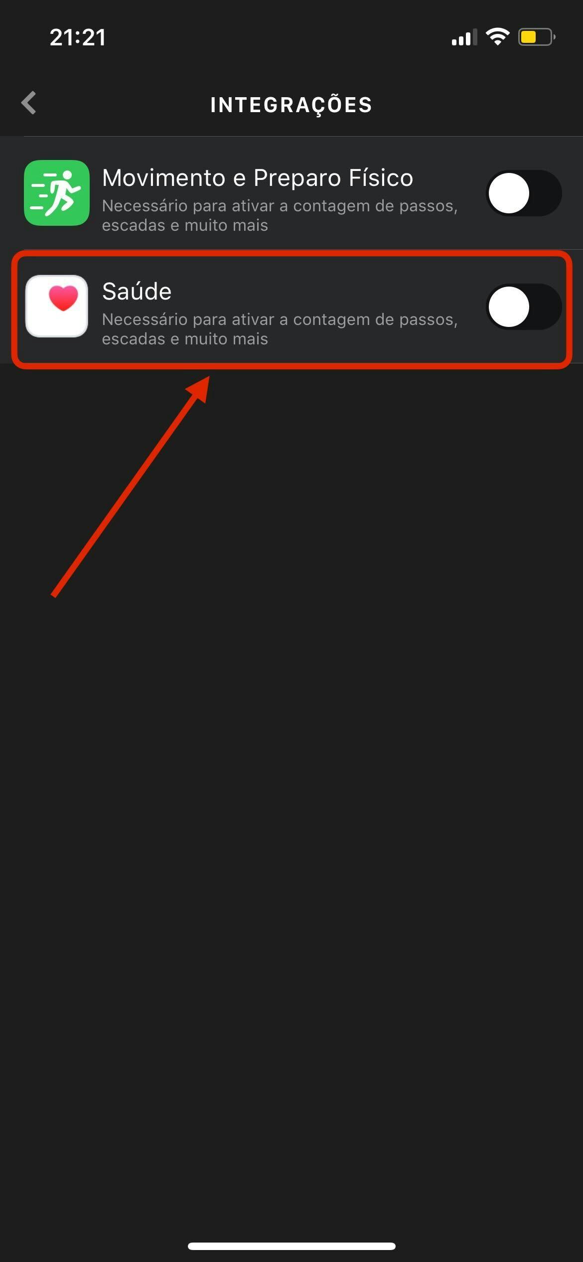 Pode igualmente integrar a app Muscle Booster com a Apple Health, para que a aplicação sincronize quaisquer passos registados pelo seu telemóvel ou pelo Apple Watch. Consulte as instruções abaixo para configurar: